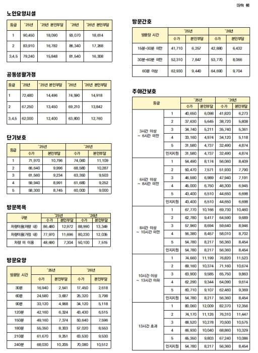 2026년도 장기요양 수가표